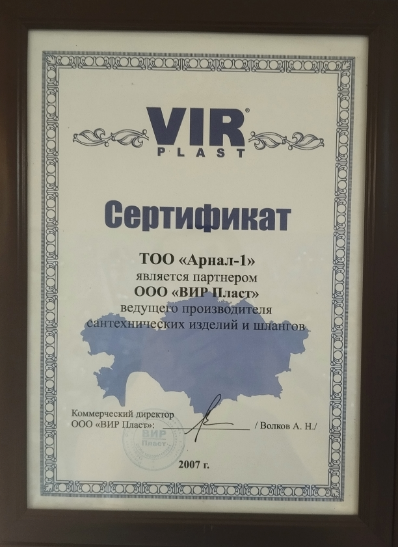 Основана в 2000 г. Компания «Арнал-1» уже более 25-ти лет занимается оптовыми поставками и продажами на рынке Казахстана сантехнических изделий от заводов производителей из России, Литвы и Китая. Вся наша продукция имеет сертификаты качества и соответствует международным стандартам. Мы являемся официальными дилерами компаний: ООО «ВИР Пласт» Россия, UAB «Rubineta» Литва, Официальным представителем торговой марки «AQUA dreams» Китай