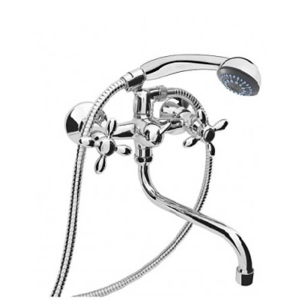 Смеситель для ванны "Milano Cross M-1К" (Rubineta) двухрычажный с длинным, S- образным изливом и крестообразными ручками