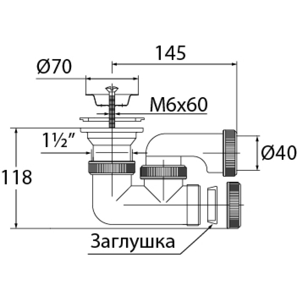 Комплектация: корпус сифона, прочистка, отвод, выпуск, чашка, гайки - 4 шт. заглушка, прокладки - 4 шт.