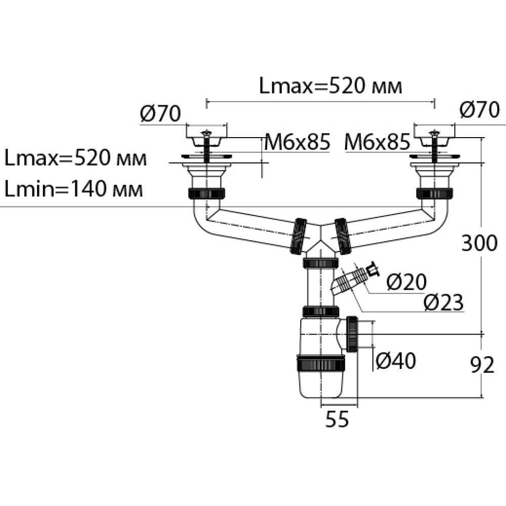 Модель сифона: двойной с отводом для стиральной машины для кухонной мойки