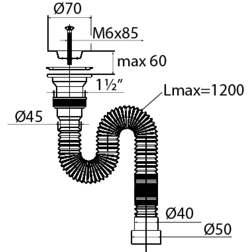 Модель: универсальный, гофрированный без корпуса для раковины и мойки