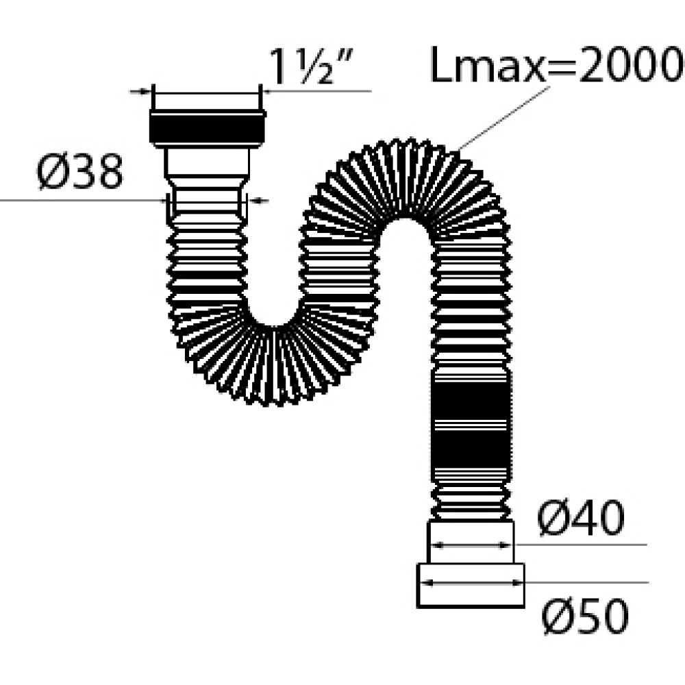 Труба "Мини Элит" L- 2000 мм гофрированная без выпуска c гайкой 1 1/2"- 40/50 мм