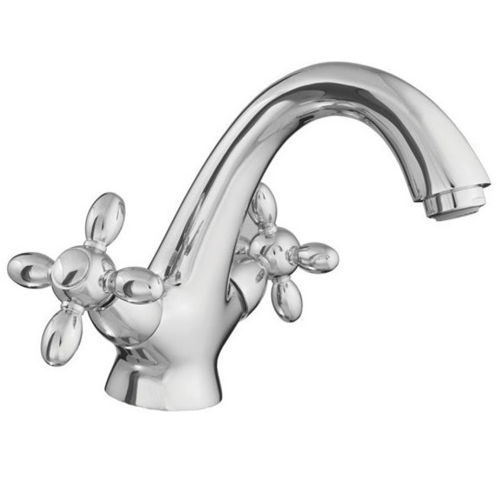 Смеситель для умывальника "Toscana Cross M- 8" (Rubineta) двухрычажный с коротким изогнутым изливом и крестообразными ручками