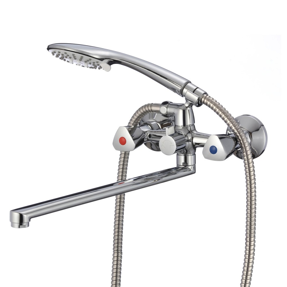 Смеситель для ванны "AQUA dreams" двухрычажный с длинным, плоским изливом и круглыми ручками