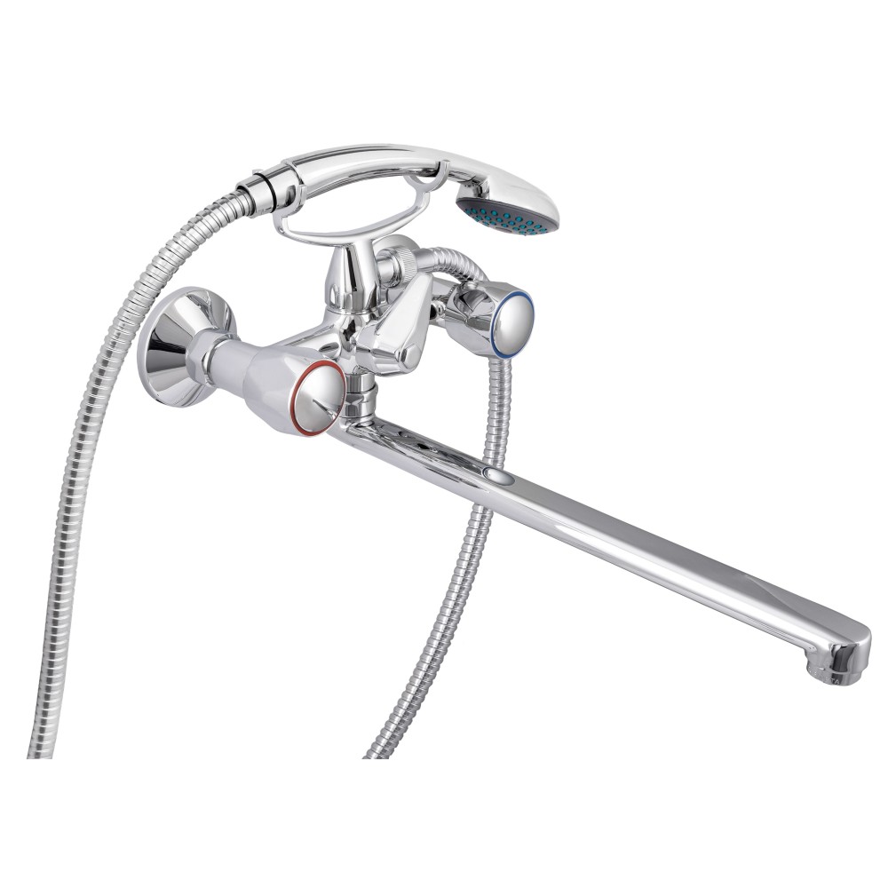 Смеситель для ванны "Globo R-1CК" (Rubineta) двухрычажный с длинным, плоским изливом и круглыми ручками