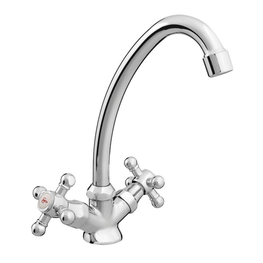 Смеситель для кухни и умывальника "AQUA dreams" двухрычажный с высоким изливом и крестообразными ручками