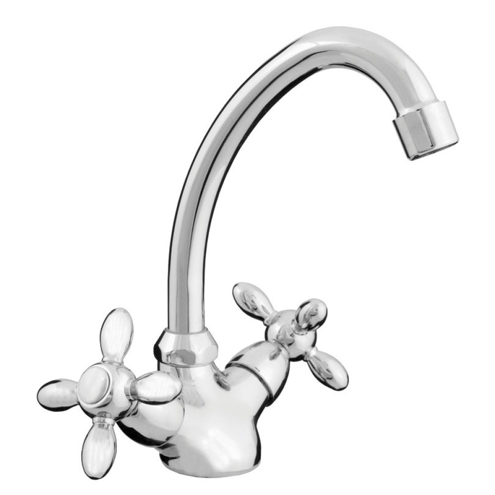 Смеситель для кухни и умывальника "Milano -8 Cross" (Rubineta) двухрычажный с высоким изливом и крестообразными ручками