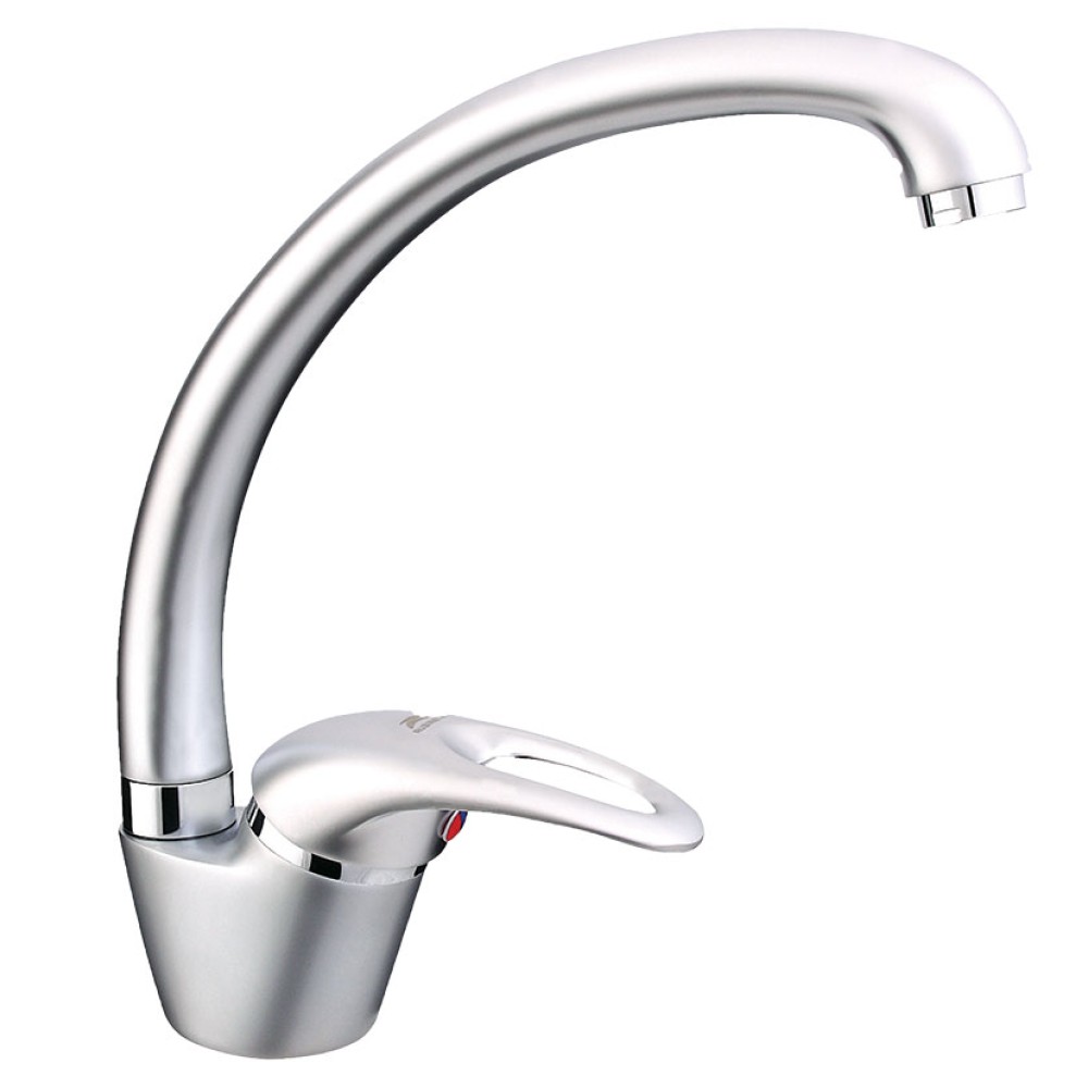 Смеситель для кухни "Mars Т -33" (Rubineta) серебро, однорычажный с высоким изогнутым изливом